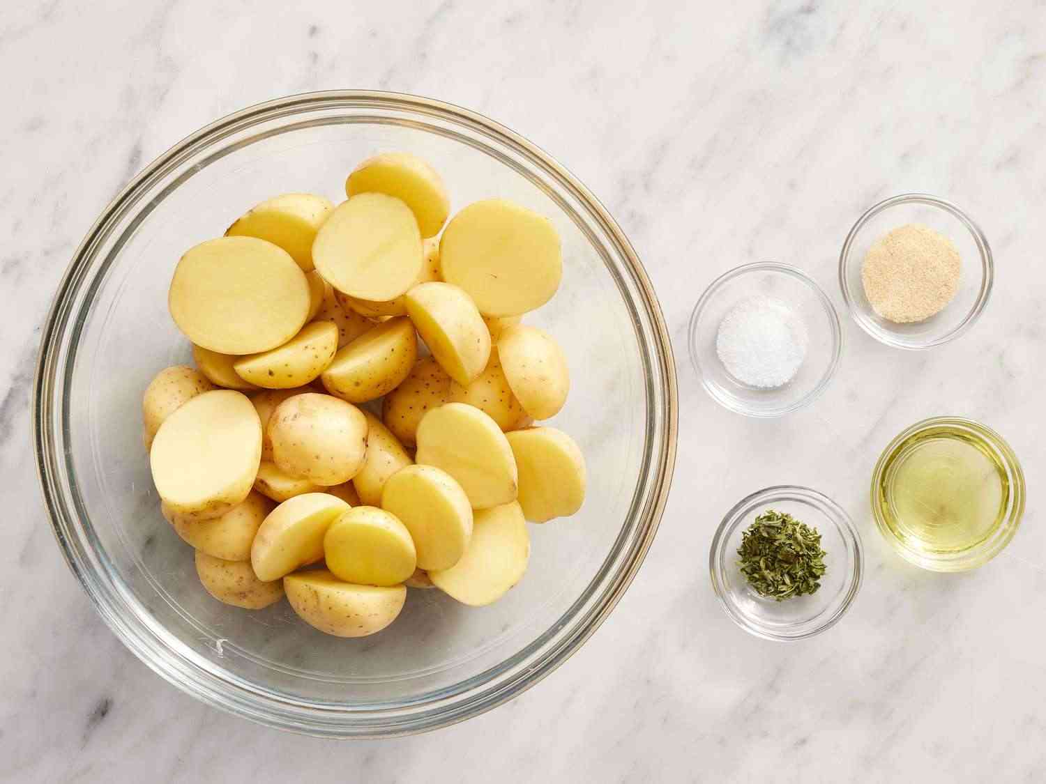 - Step 2:Place potatoes into a bowl; add oil and toss to coat. Add garlic, parsley, and salt; toss until well distributed. Transfer potatoes to the air fryer basket. Dotdash Meredith Food Studios